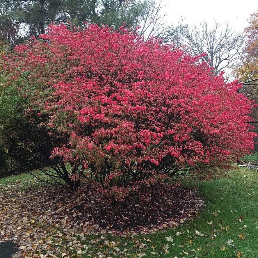 Burning Bush Euonymus Shrubs make an excellent addition to many landscapes as a sensational accent hedge. This dwarf ornamental shrub’s intense crimson red fall color is sure to stand out, and is fairly easy to care for. Euonymus alatus is compact and its spring and summer foliage is a rich green hue. Plant this shrub in mass and near other evergreen shrubs.