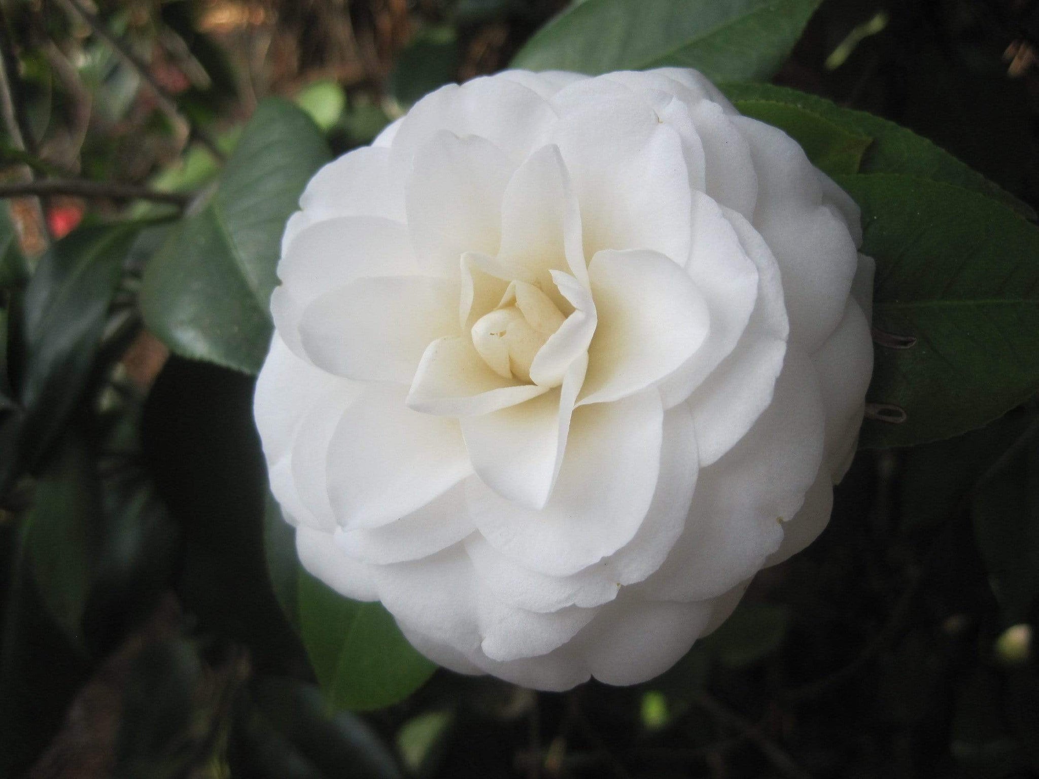Camellia White by the Gate (Camellia japonica) are flowering shrubs that produce a nearly continuous year-round display of pure white flowers. Camellia flowers boast of perfectly formed double blooms over an extended period from early to late season in our gardens. White by the Gate Camellia has an upright to rounded growth habit with contrasting, dark green foliage, creating the perfect backdrop for the snow white flowers.