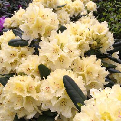 Capistrano Rhododendron is a compact shrub prized for its lemon-yellow flowers opening during mid-season. Dark green leaves with rippled edges. It as a great tolerance for colder locations. It is also a very disease and pest resistant Rhododendron.
