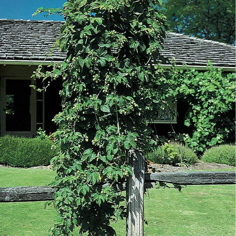 Cascade Hops Vines grow to 20-25 ft. in one season and they are winter hardy in the North. Large leaves look pretty against a fence or trellis. Produces pale yellow hops that give home brews authentic Old World flavor.