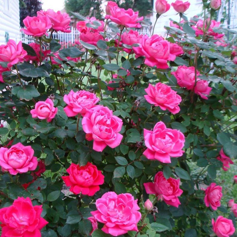 The Pink Double Knockout Rose (Rosa ‘Radtkopink’) blooms in early spring bright bubble gum pink roses that last until the first frost. All along the thorned stems, you can find luscious, green foliage that is a welcome contrast to the vibrant blooms.
