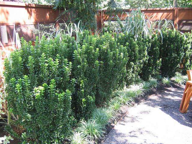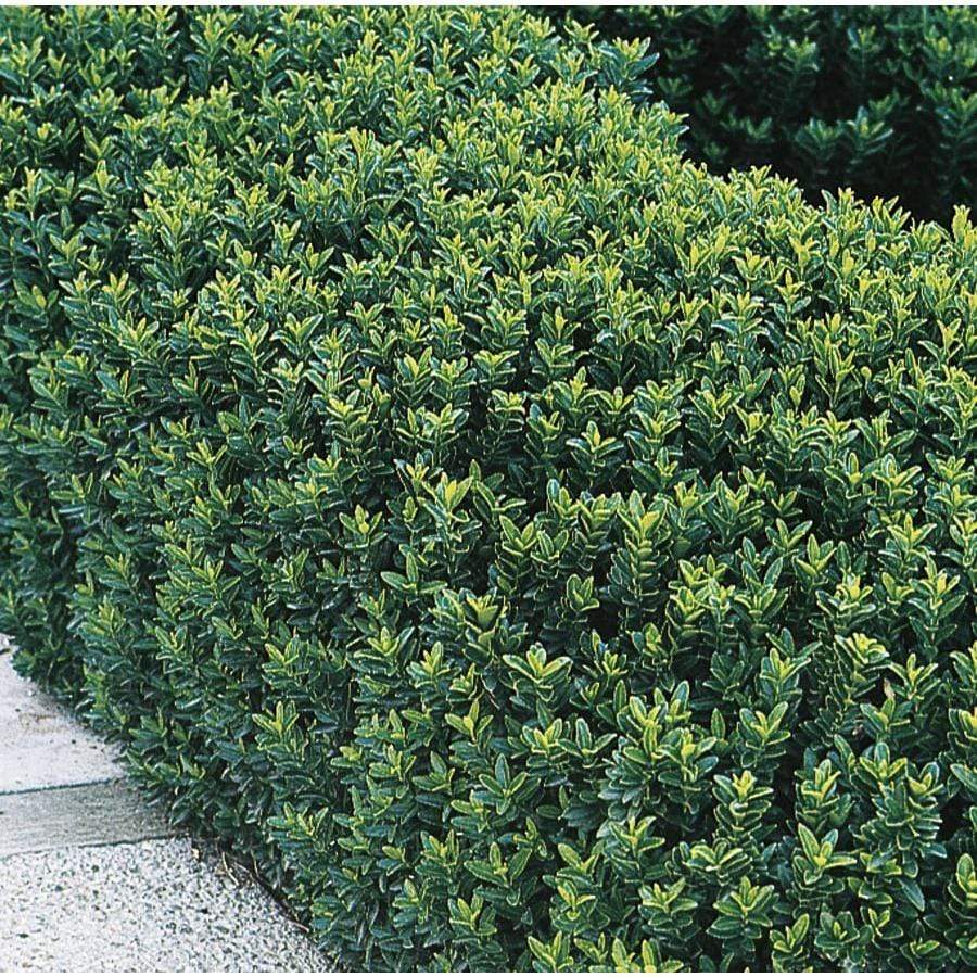 Evergreen Euonymus Greenspire or Box-Leaved Euonymus will grow to be about 6 feet tall at maturity if left unpruned, with a spread of up to 2 Feet. Makes a great low growing privacy hedge or buffer screen around utilities and Air conditioning units. Great replacement plant for boxwoods due to having the same leaf shape and evergreen qualities.
