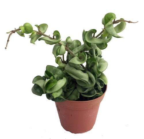 Hindu Rope Hoya Plant (Hoya carnosa ‘Compacta’), also known as Indian Rope Hoya, is a Hoya plant that produces twisted, waxy leaves that emerge on cascading rope-like vines, making this Hoya perfect as a hanging plant. Because of its bizarre look, this is the rope plant everyone wants! As your Indian Rope Plant matures, it will bloom gorgeous clusters of star-shaped fragrant flowers. If you are patient and nurture your Hoya for years, mature Hoya carnosa vines can grow to be about 2 inches thick and up to 20 feet long! It does well in hanging baskets and terrariums as long as there is adequate drainage. Though it may be tempting, do not remove the spurs at the end of the vines because that is where the blooms will form.