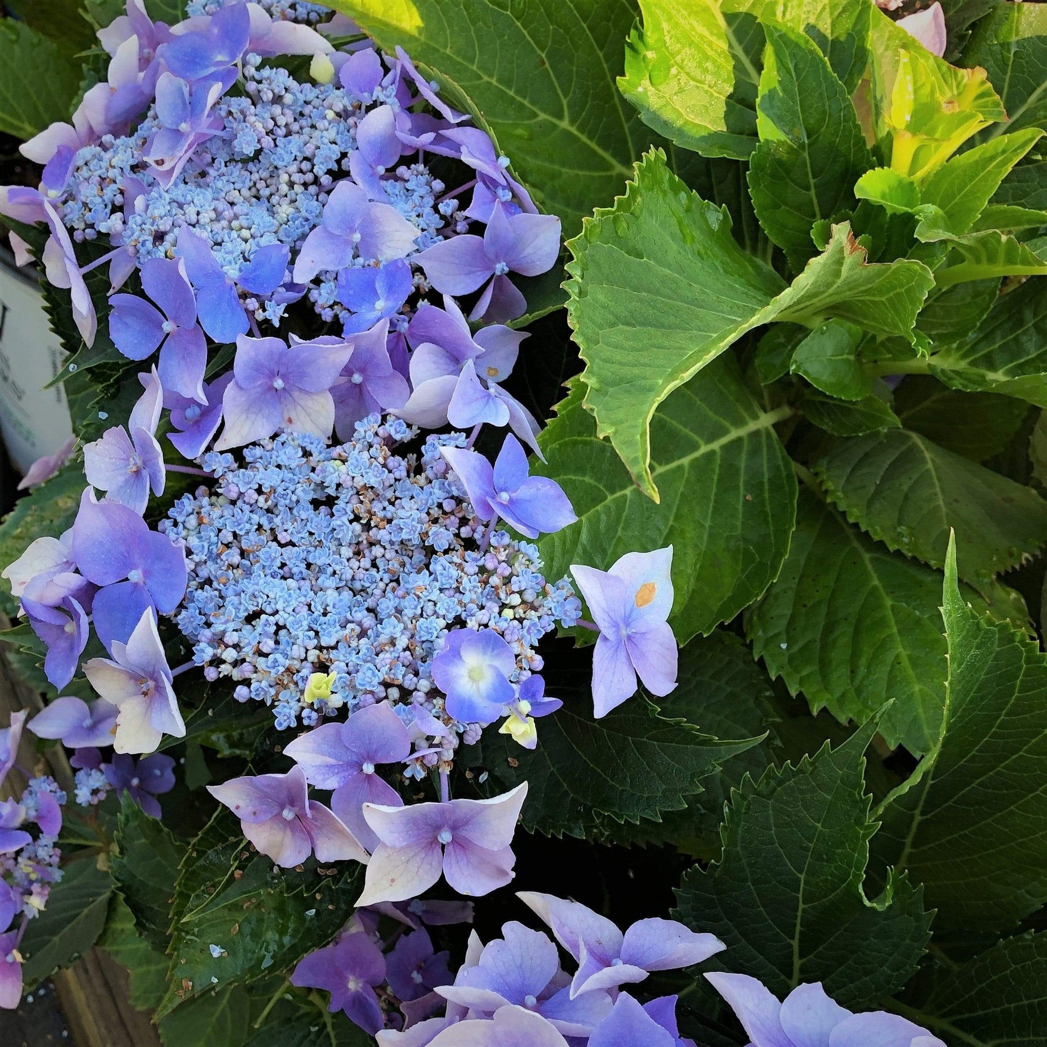Let's Dance Starlight Bigleaf Hydrangea (Hydrangea macrophylla) is a lacecap cultivar from Proven Winners known for its blue and pink flowers and rich green foliage. It represents the first reblooming lace cap hydrangea and has exceptionally rich vibrant bloom colors. The lacecap florets will turn blue in highly acidic soils and pink in slightly acidic or alkaline soils. Add aluminum sulfate to the soil to encourage blue flower color and lime to encourage pink.