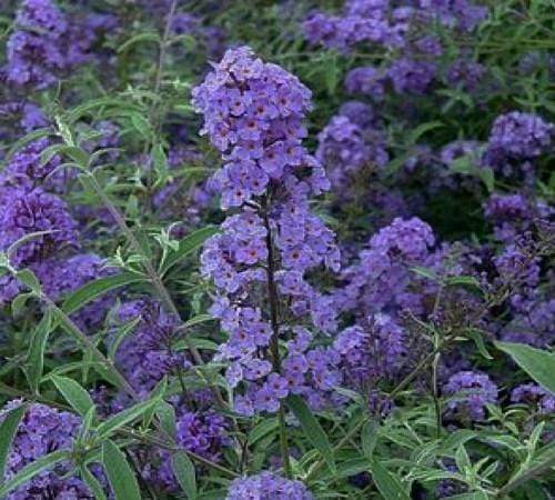Buddleia Nanho Purple Butterfly Bush is a vigorous, quick-growing shrub that is ideal for the back of a large border. The silvery-green foliage makes a lovely accent for the lavender flowers which are seem to sway in even the slightest of breezes. Blooms cover the plant from June to September.