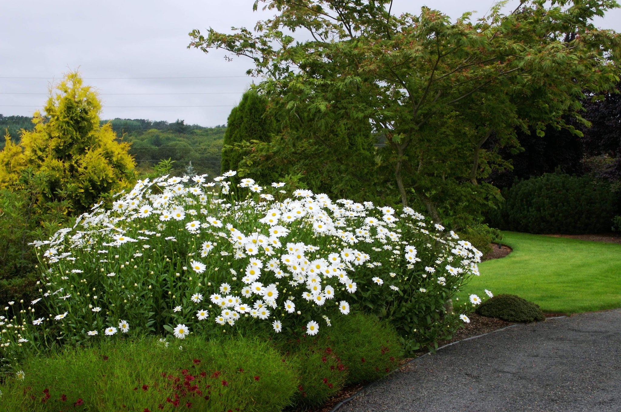 The Leucanthemum Becky commonly known by the name, Shasta Daisy Becky is an upright flowering perennial with lovely white flower petals with a warm yellow center. This particular daisy is one of the more larger than other Shasta cultivars getting to a max height of around 4 feet tall.