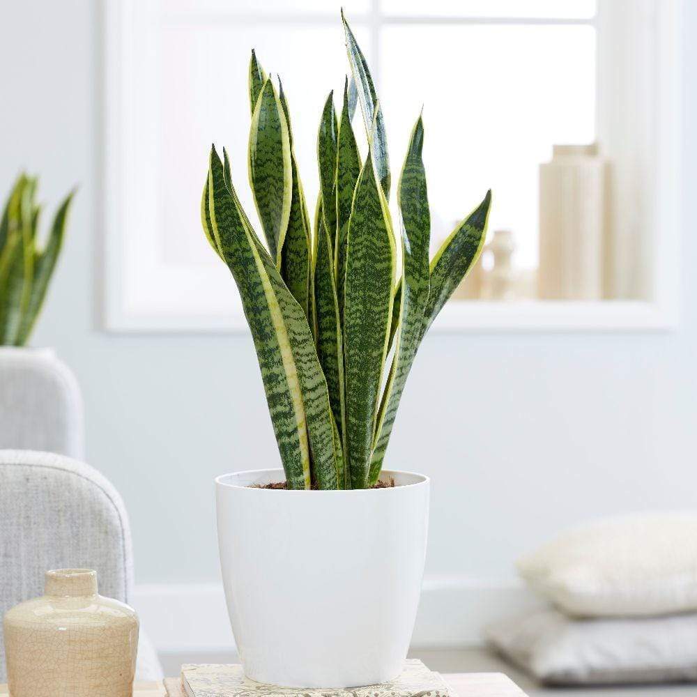 Laurentii Snake Plant is a low light houseplant that is extremely drought-tolerant. Well known as a plant that cleans the indoor air of toxins. They're very easy to grow and have wonderful green and gold variegated foliage.